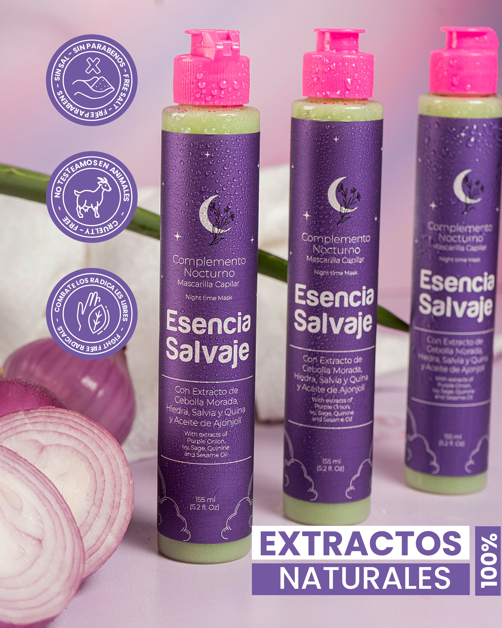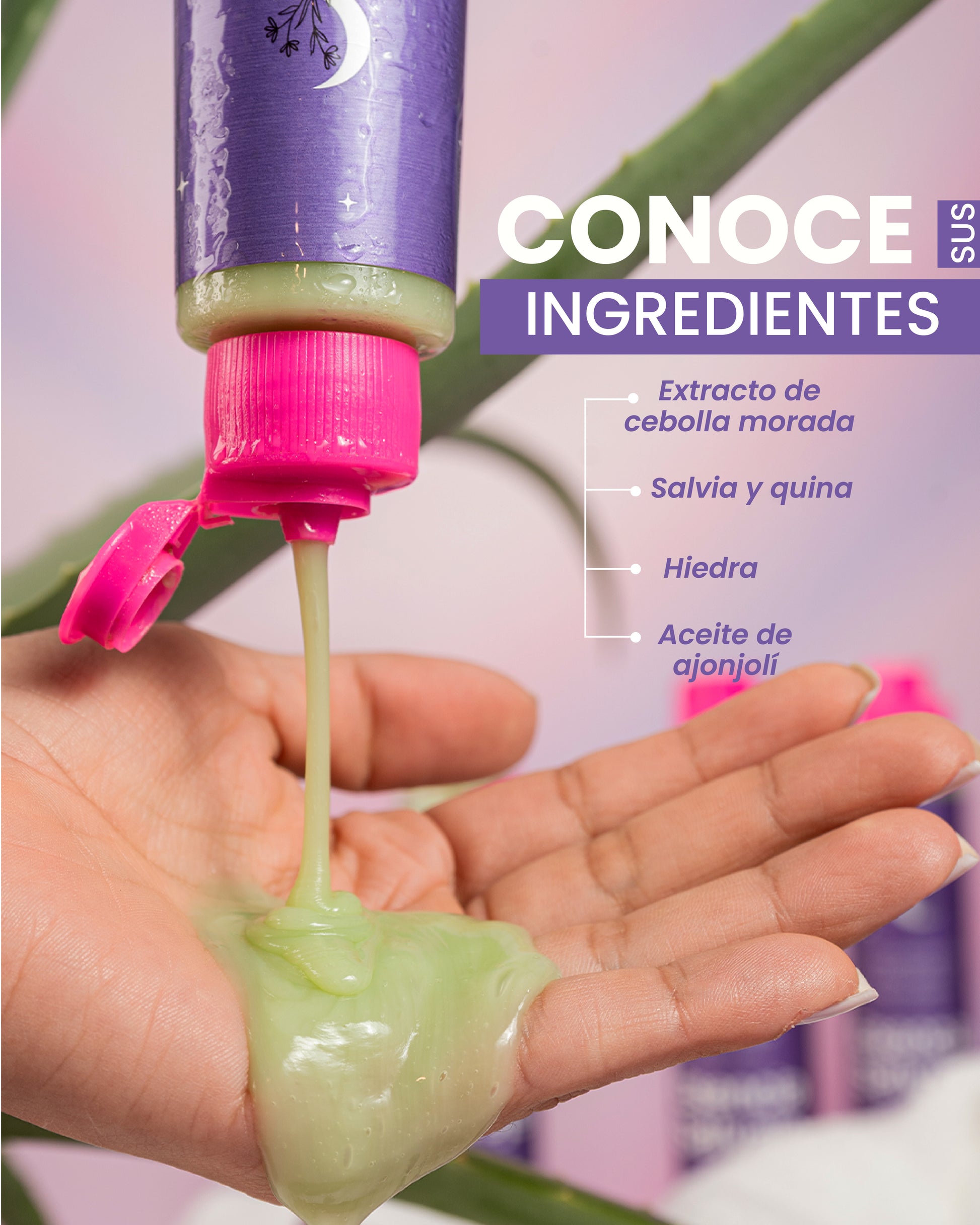 Extracto de cebolla, Extracto de salvia, Extracto de hiedra, Aceite de ajonjoli, Extracto de quina